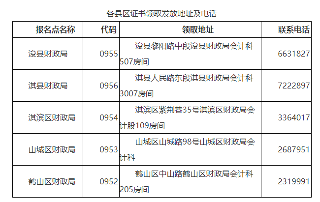 证书管理号第12至15位,为领取地的县区财政局代码。如XXXXXXXXXXX0954XXXXX,领取地点为淇滨区财政局。各县(区)财政局代码及领取地点、联系电话详见附件。