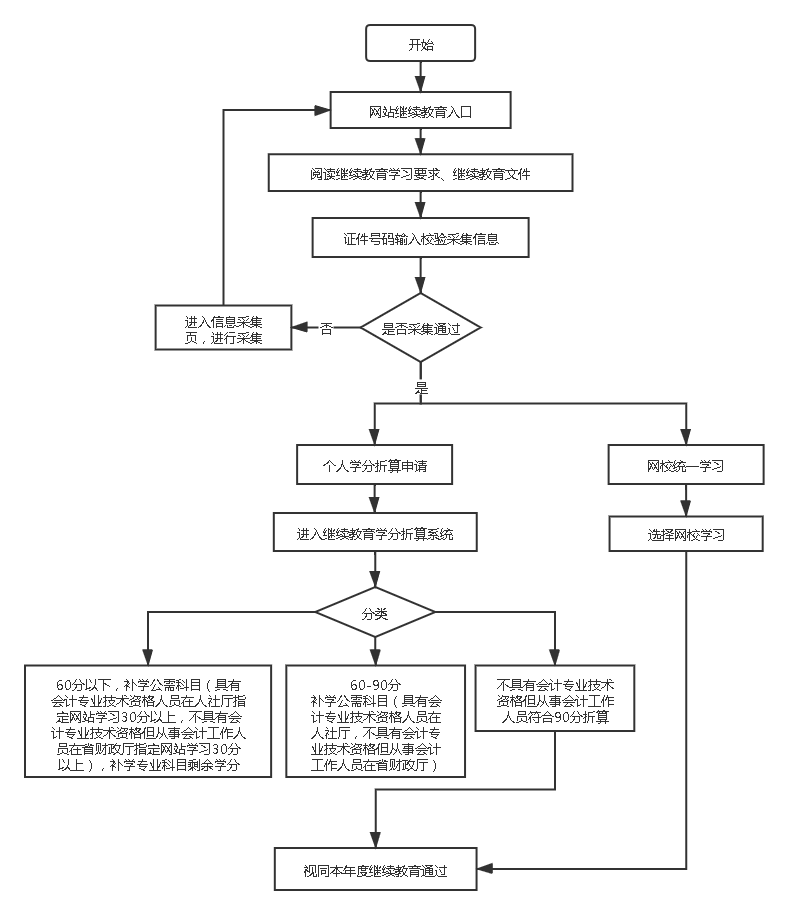 1.具有会计专业技术资格(初级、中级、高级和正高级)的人员在人社厅网站指定网校学习公需科目30学分,在财政厅指定网校学习专业科目60学分;