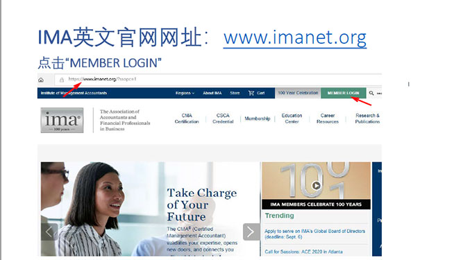 第一步、打开IMA英文官网,网址:http://www.imanet.org ,然后点击导航“MEMBER LOGIN”栏目,如下图。