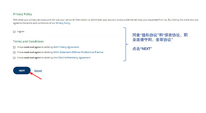 第六步、同意“隐私协议”和“保密协议、职业道德守则、重罪协议”然后点击“NEXT”按钮