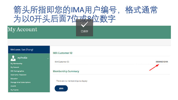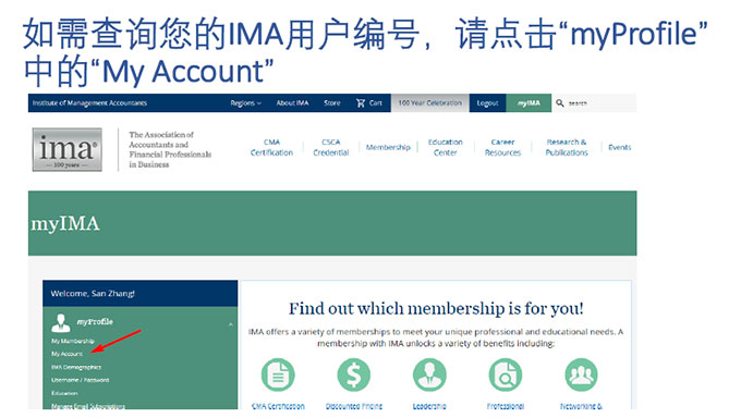 如需查询您的IMA用户编号,请点击“myProfile” 中的“My Account”