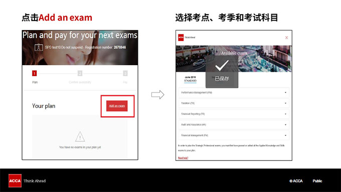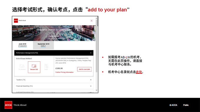 选择考试形式,确认考点,点击 “add to your plan”