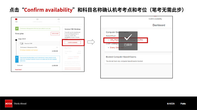 点击 Confirm availability 和科目名称,确认机考考点和考位,笔考无需此步。