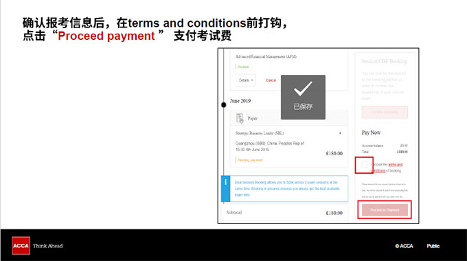 确认报考信息后,在terms and conditions 前打勾,点击 “proceed payment”支付考试费用