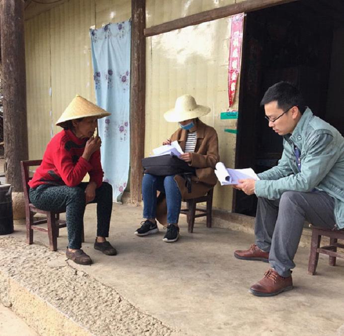 (扶贫审计人走访贫困户,核实脱贫户脱贫情况)