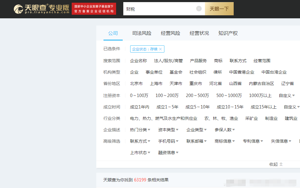 超千亿的市场规模和政策的推波助澜,让财税服务领域迅速成为新的市场“风口”。据天眼查检索“财税”统计,处于存续状态的相关企业就超过6万家。