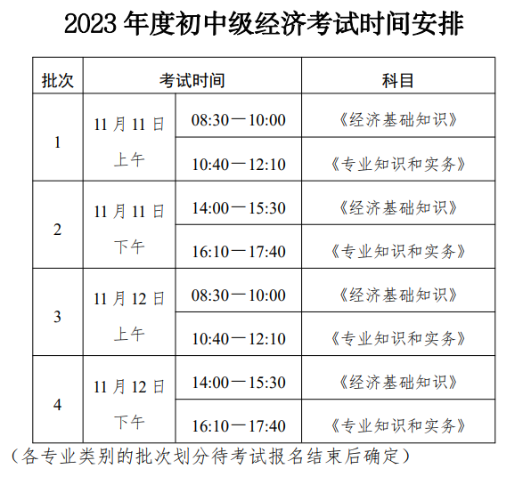 附件:1.2023 年度初中级经济考试批次设置及考试时间安排