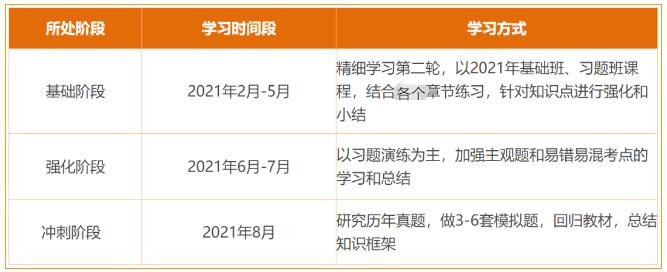 由于2021年注会考试提前至8月底,考生可以将备考时间分为基础阶段、强化阶段、冲刺阶段,具体的时间规划和学习方式如下: