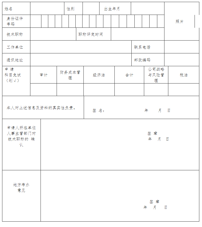 2. 2022年度注册会计师全国统一考试专业阶段考试科目免试申请表