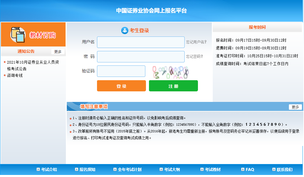证券从业资格考试报名官网入口:中国证券业协会网上报名平台,网址:https://ks.sac.net.cn/sac/login/login_lb.htm