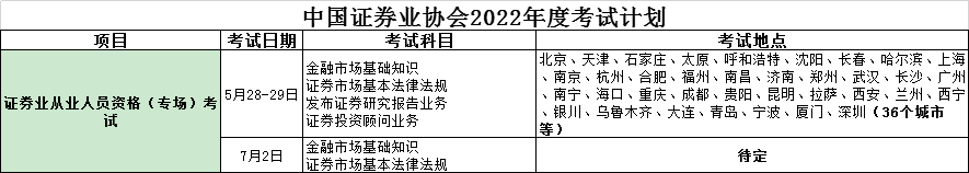 证券业从业人员资格(专场)考试安排如下: